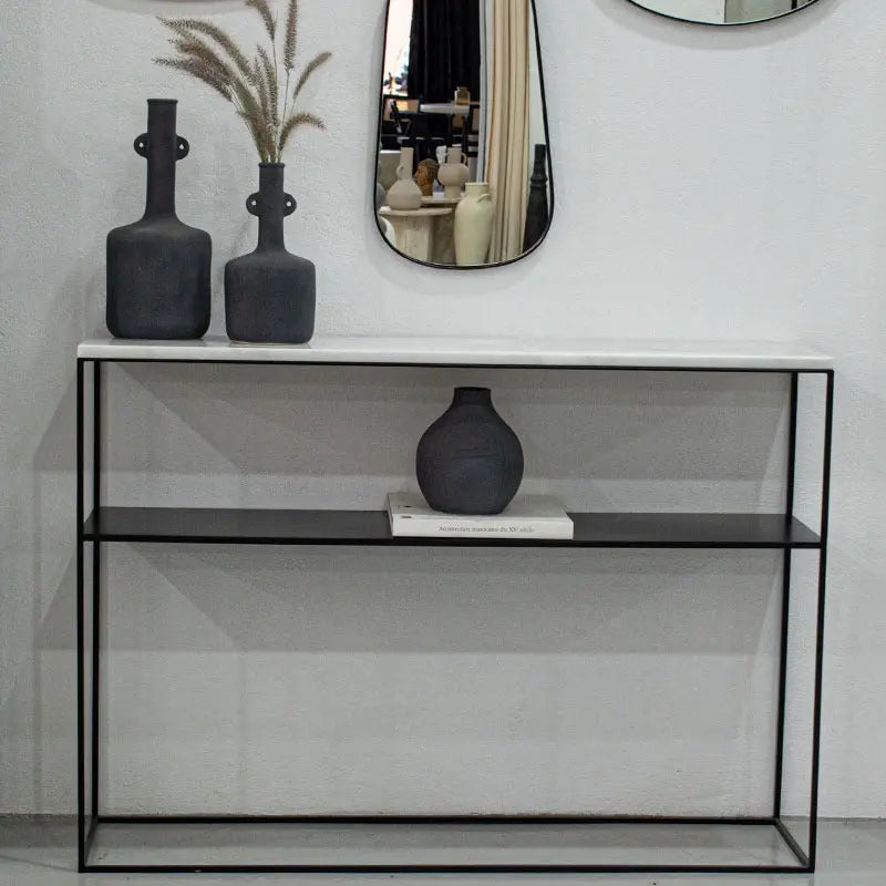 Console d’Entrée en Fer et Marbre Blanc – Une Alliance de Modernité et de Luxe